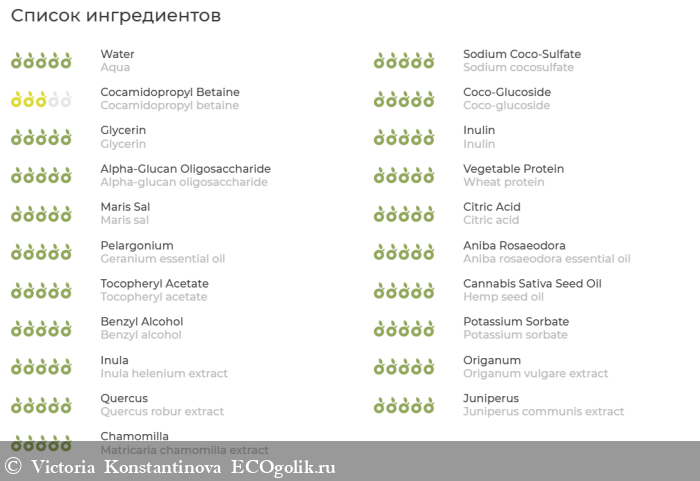 - обладает довольно ярким ароматом - это эфирное масло герани. Запах чем-то похож на знаменитый иланг-иланг, но он испаряется быстрее. Из всей линейки шампуней Siberina, этот шампунь единственный обладает таким сильным запахом, что в принципе мне не мешает им наслаждаться.