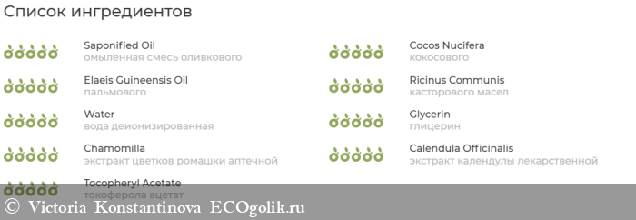 - омыленная смесь оливкового, кокосового, пальмового и касторового масел.
