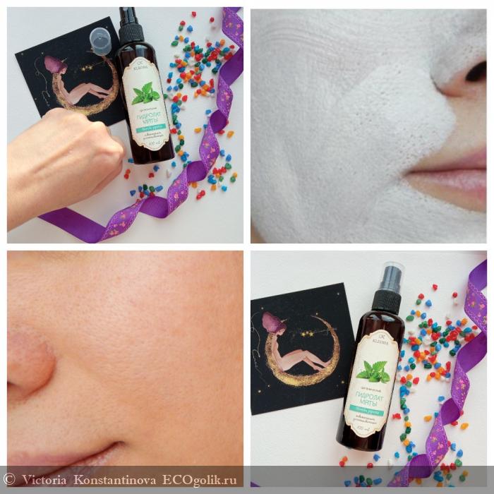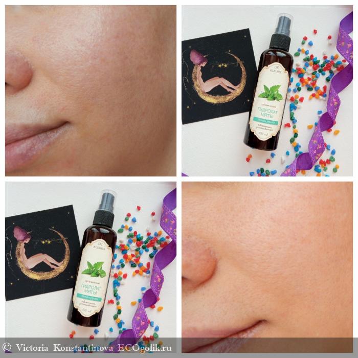 - тонизирование кожи, особенно в весенний период хочется мяты и свежести, так как на улице светит солнышко, тоники с кислотами отходят на второй план, отопление дома и в офисе жарит, появляется жирный блеск в Т-зоне. Гидролат успокаивает сухую кожу, при это выравнивает ее тон от сальности.