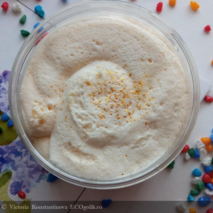 О...О...О... Вы только посмотрите... Как производитель оформил, казалось бы, привычное многим из нас взбитое масло Ши. Внутри крема насыпано небольшое количество золотых блесток...