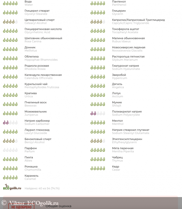 Самому перепечатывать вручную - лень. Кое как нашел на стороннем сайте. И Экоголик выдал, что крем НЕ эко, при том еще не распознав несколько ингредиентов.