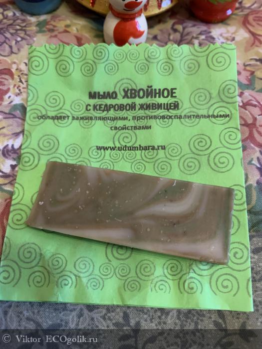 Получил я от Udumbara несколько пробничков , в том числе - Хвойное мыло с кедровой живицей. Несколько пластинок, одну уже истратил. Потому могу поделиться впечатлением