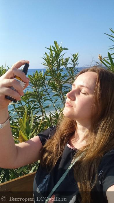 Брызгала его на лицо и шею в течение долгих прогулок по жаре. Гидролат отлично освежал и увлажнял мою кожу.