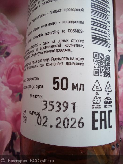 Rosa gallica flower water (гидролат розы - продукт пароводяной дистилляции цветов розы).