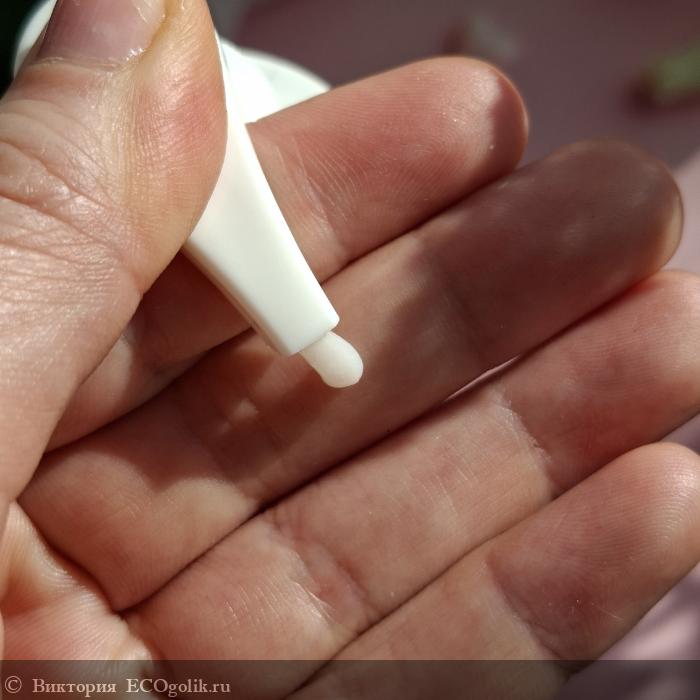 Кондиционер имеет скользкую, но приятную на ощупь, текстуру. По ощущениям похоже на молочко для тела, но не впитывается.