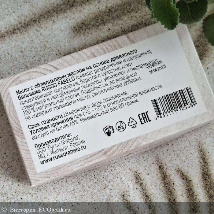 Это Мыло с облепиховым маслом на основе древесного бальзама от российского бренда натуральной косметики Russo Fabelo