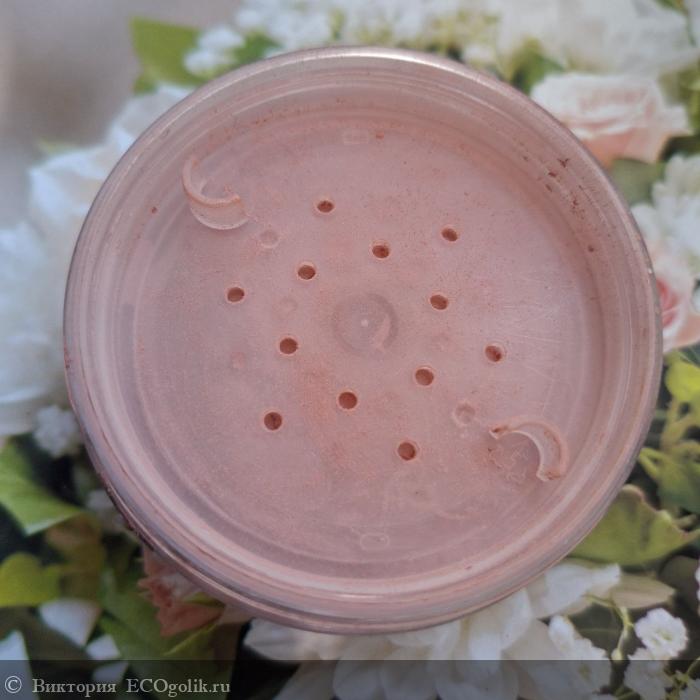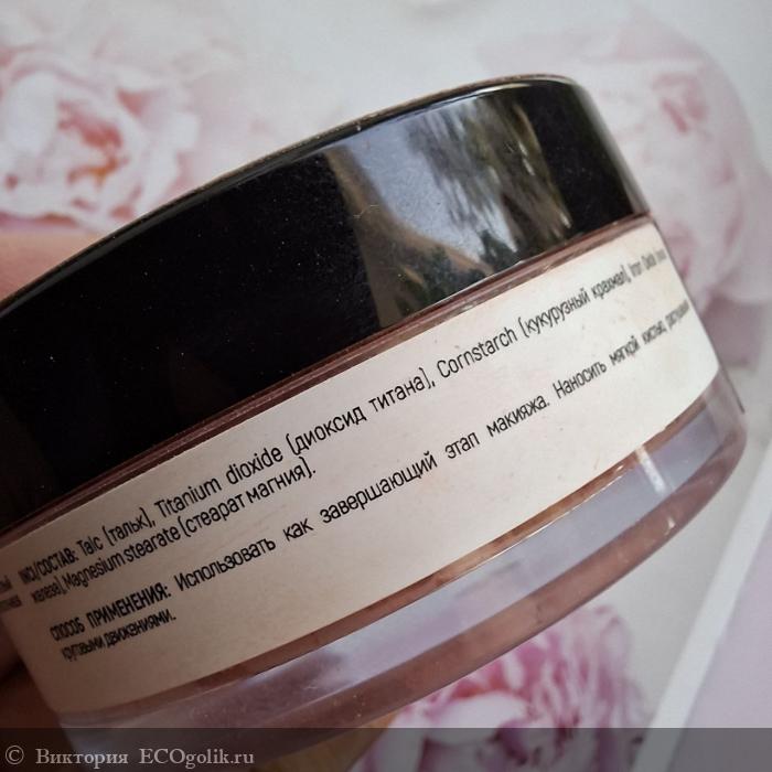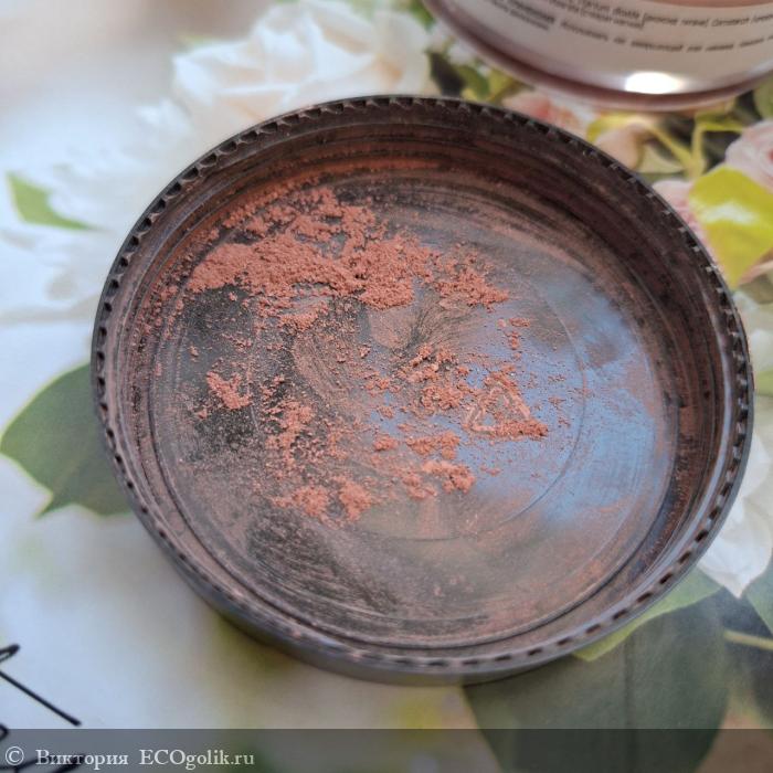 Я высыпаю немного на крышечку и едва касаюсь пушистой кистью. Затем я лёгким движением наношу на лицо и круговые движениями распределяю продукт.