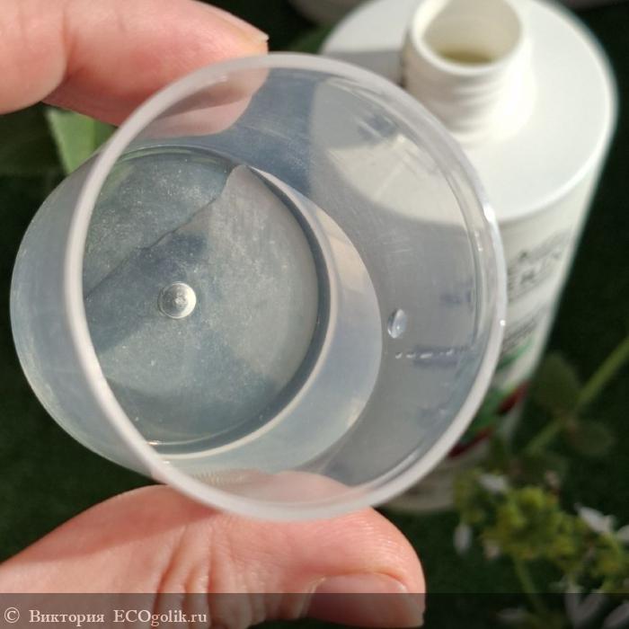 Ополаскиватель прозрачный и имеет свою текстуру. То есть он ощущается не совсем как вода, а больше как суспензия с небольшой вязкостью.