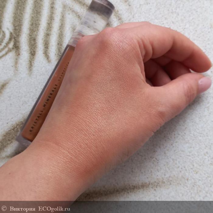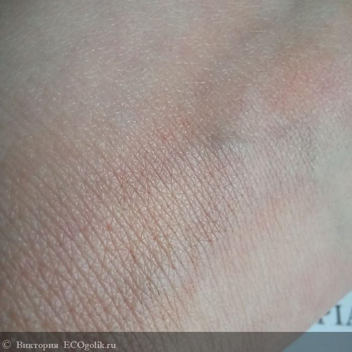 Оттенок тёплый коричневый с очень мелким шиммером, который при распределении по коже сливается в равномерное, элегантное сияние.
