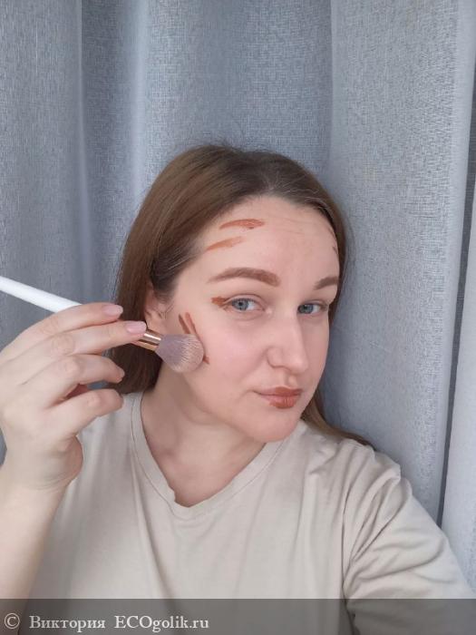 Распределяю чаще всего пальчиками, так как спонж "съедает" очень много драгоценного продукта. Бронзер легко распределяется по коже, не залипает и не оставляет пятен.