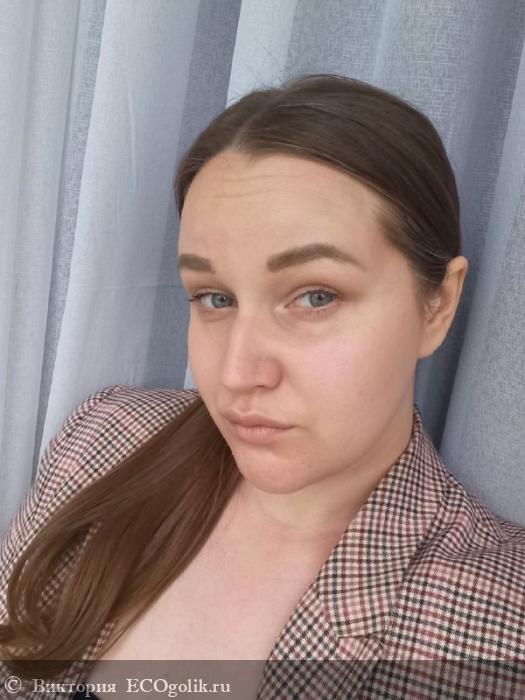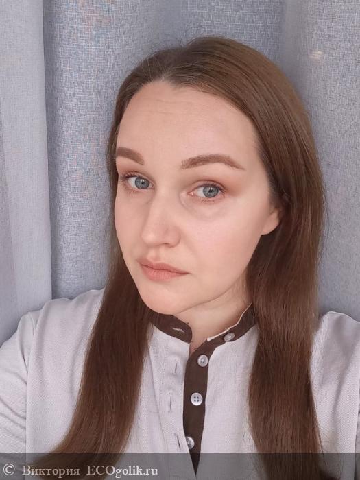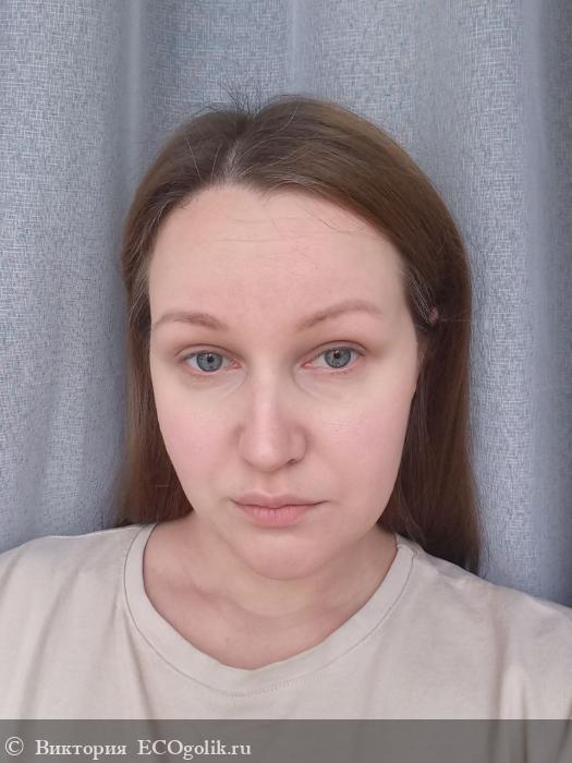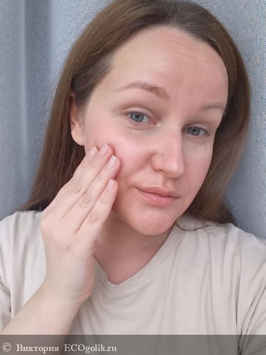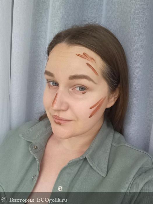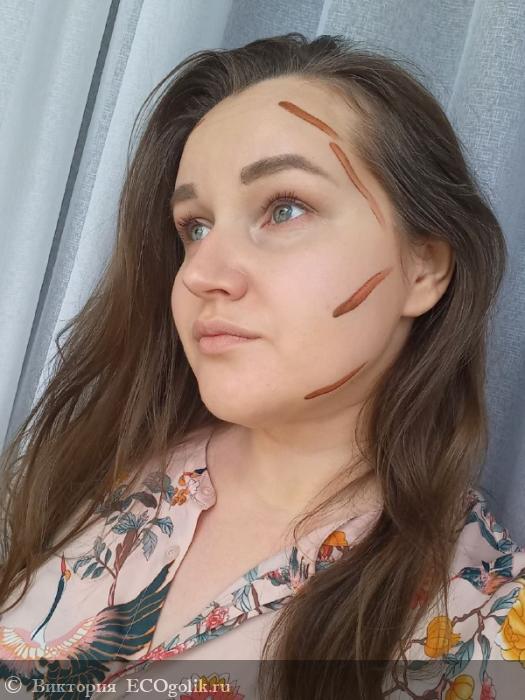 Получается лёгкое скульптурирование. Мягко выделяются выступающие части лица, создаётся аккуратный объём и в целом продукт выглядит на лице опрятно.