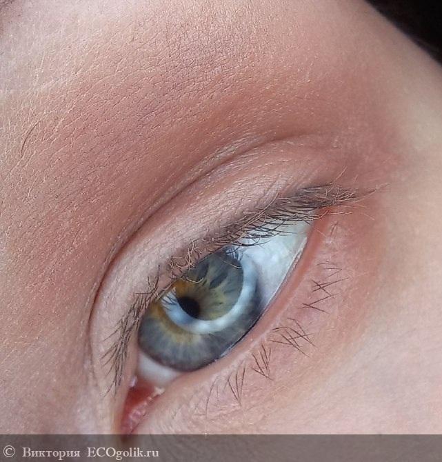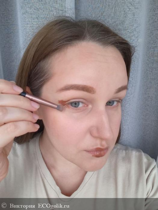 Бронзер красиво ложится на веки, создавая естественную глубину и форму. Носится комфортно, не скатывается в складку.