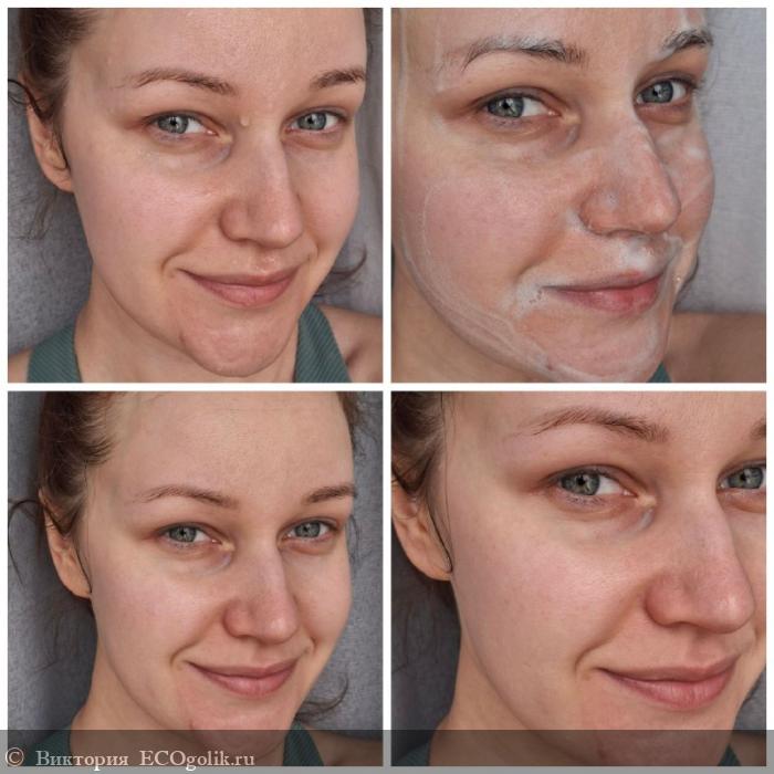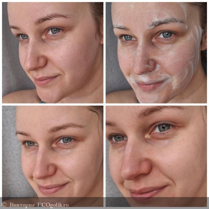 Тактильно эта пенка ощущается как взбитый крем для лица. Удивительно даже как очищающее средство может быть настолько ухаживающим.
