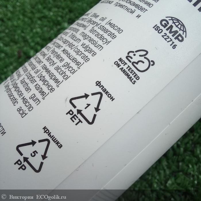 Упаковкой является 200 мл-я бутылочка, изготовленная из перерабатываемого пластика. На этикетке имеется маркировка:
