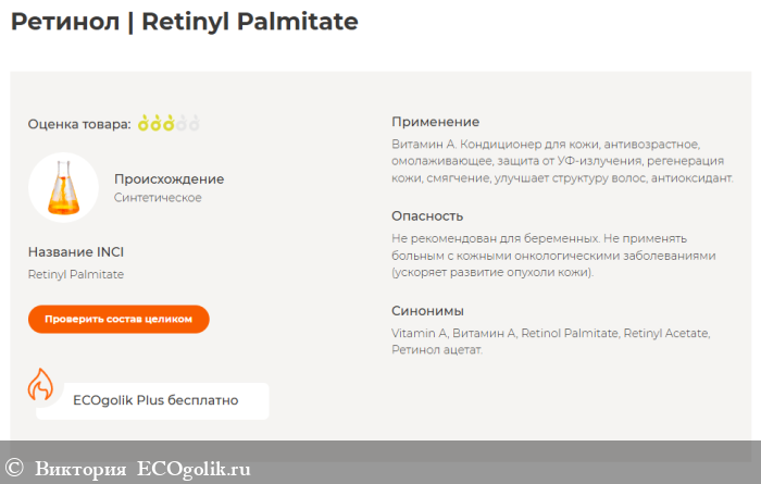 Несколько ингредиентов сайт оценил в 3 яблочка, например Retinyl palmitate