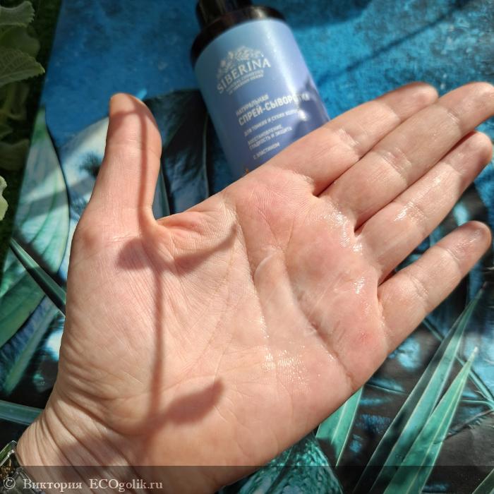 После мытья волос, на чуть подсушенные полотенцем волосы, я наношу спрей-сыворотку.