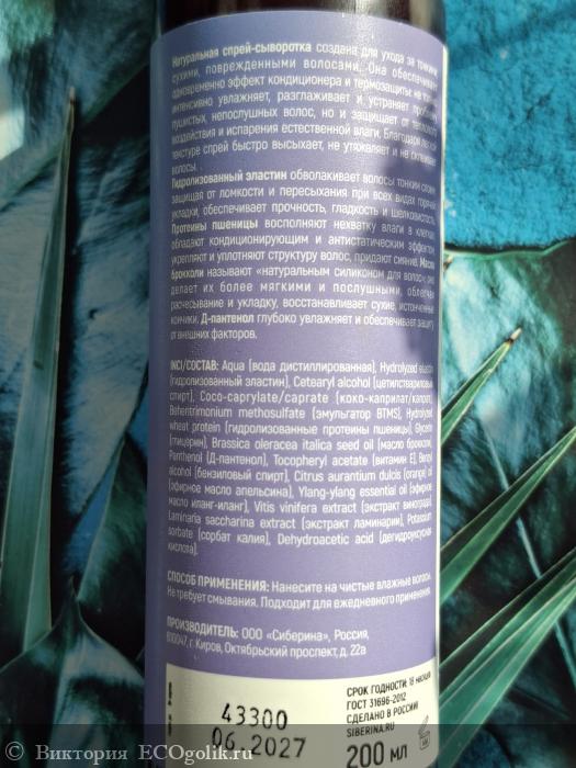 Виктория: Спрей-сыворотка для тонких и сухих волос "Восстановление, гладкость и защита" с эластином SIBERINA