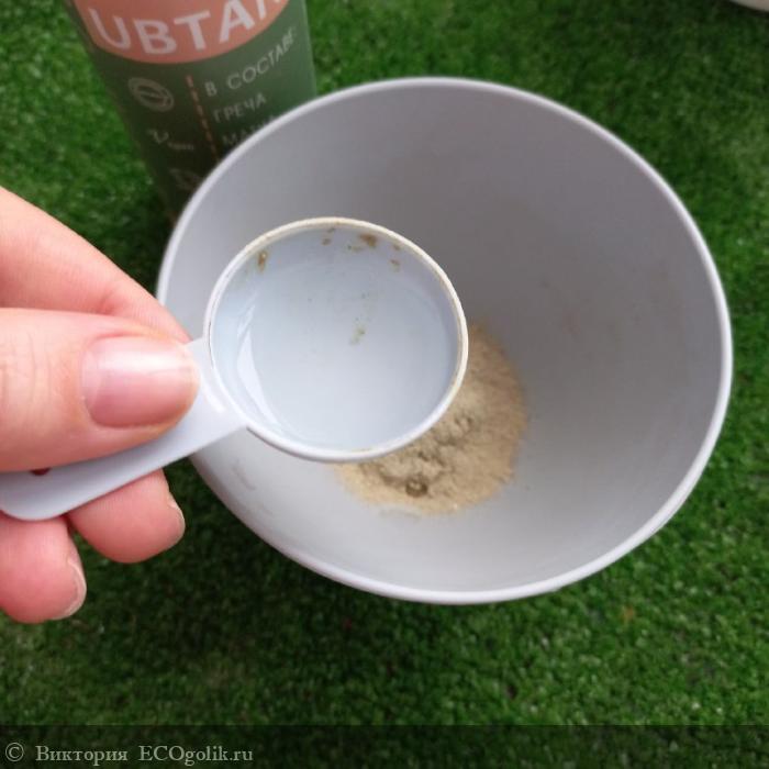 Для этого способа применения нужны дополнительные материалы. В рекомендации написано, что необходимо развести убтан с водой или гидролатом, затем нанести смесь на лицо, оставить на 5-10 минут и смыть.