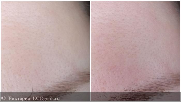 На фотографиях ДО/ПОСЛЕ видно, что ДО поры тёмные (грязные) и кожа в шелушениях. Особенно хорошо это видно на первом фото - область щёк, возле носа.