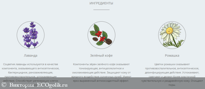 Многие компоненты имеют европейский сертификат Ecocert и соответствуют COSMOS-Standart.