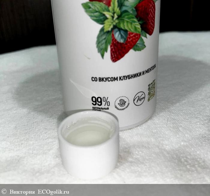 Ополаскиватель обладает приятным, слегка мятным ароматом и сладким привкусом