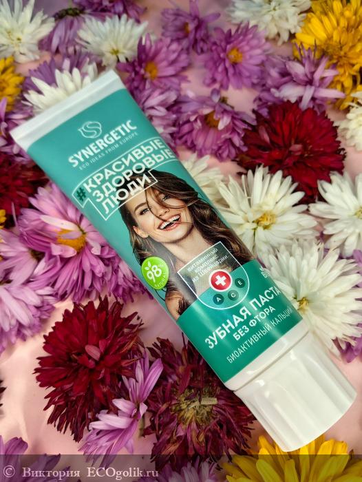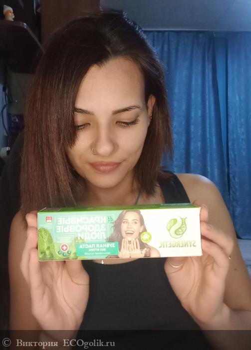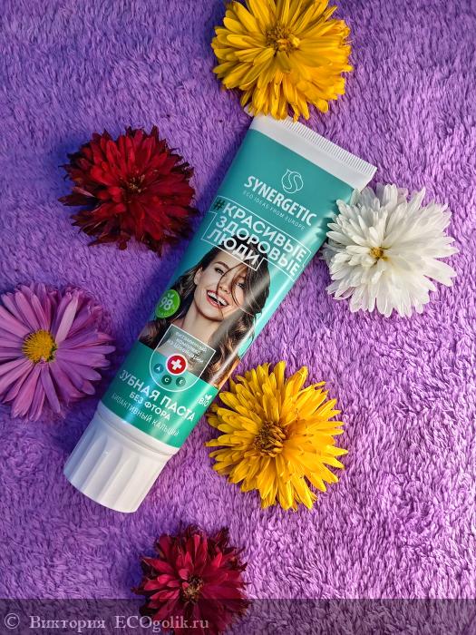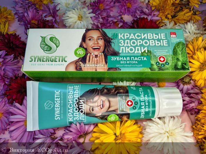 Synergetic. С таким прекрасным составом хорошо очищает зубы, не оставляет не приятных ощущений на зубах (аскома) После неё зубы гладкие, есть ощущение свежести. Ощущение свежести после чистки сохраняется надолго. Приятный мятный вкус и запах. Паста снимает чувствительность зубов. Экономичная, мягкий вкус.