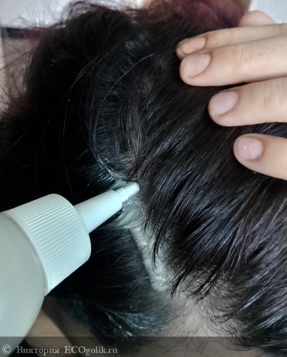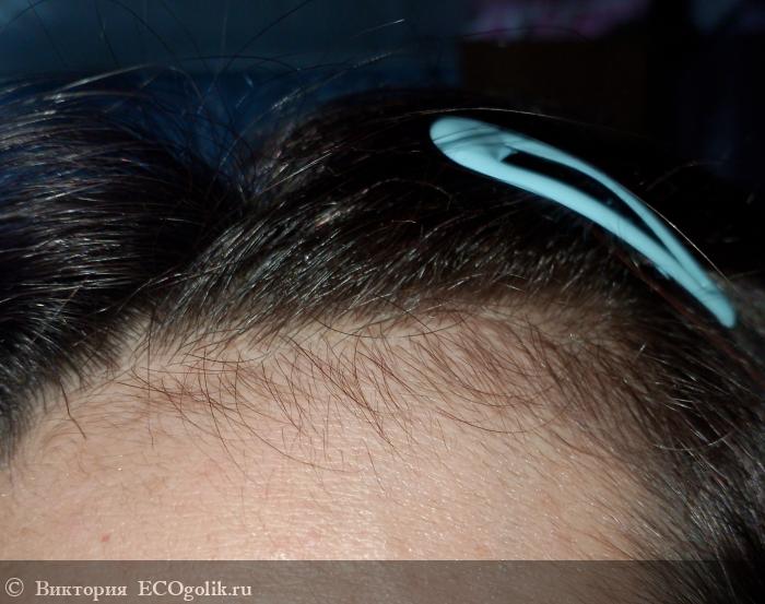Я наносила на все корни, тщательно втирала, по больше на эту часть головы! В области просветов! Еще немного на всю длину!