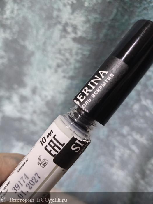 Спереди флакона написано название продукта, и его бренд SIBERINA. Нарисован маленький, интересный рисунок.