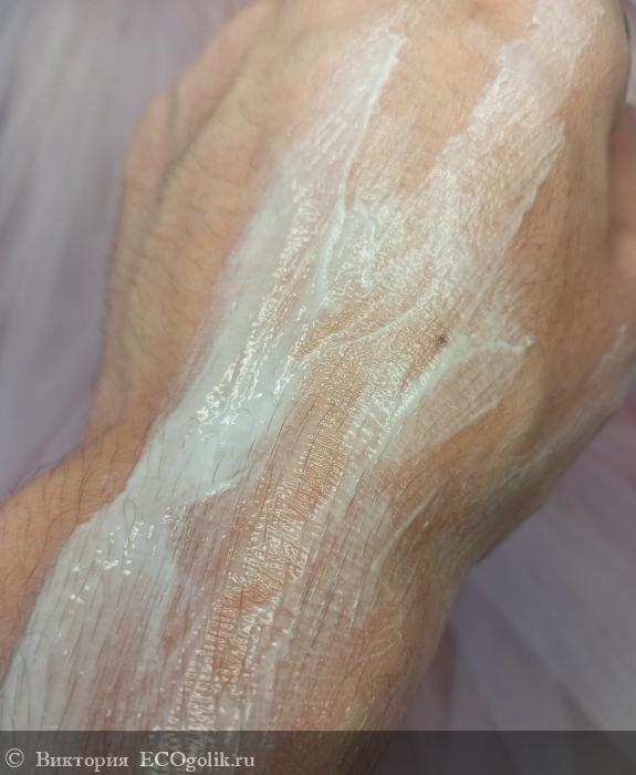 Консистенция пористая и воздушная. Нежная, приятная к коже. Внешне похожа на йогурт, сметанку. Средняя плотность, не сильно густая, но и не растекается.