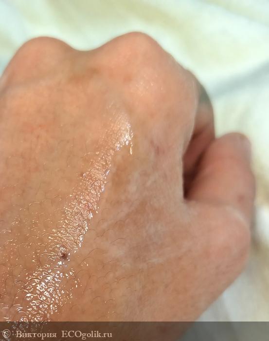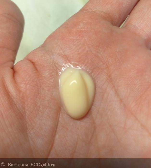 Текстура сочетает в себе воду и масла. Не густая и не жидкая консистенция. Слегка жирненькая но и водянистая. Можно сказать воздушная, невесомая. Точно похожа на не взбитые сливки! Попадая на кожу сразу тает, и быстро впитывается, не оставляя никаких следов, а только приятные ощущения мягкости и увлажненности.