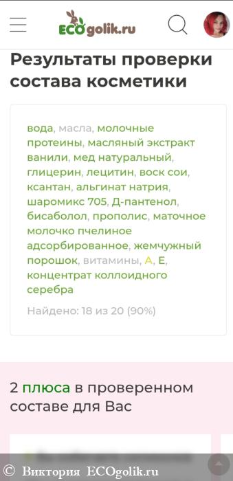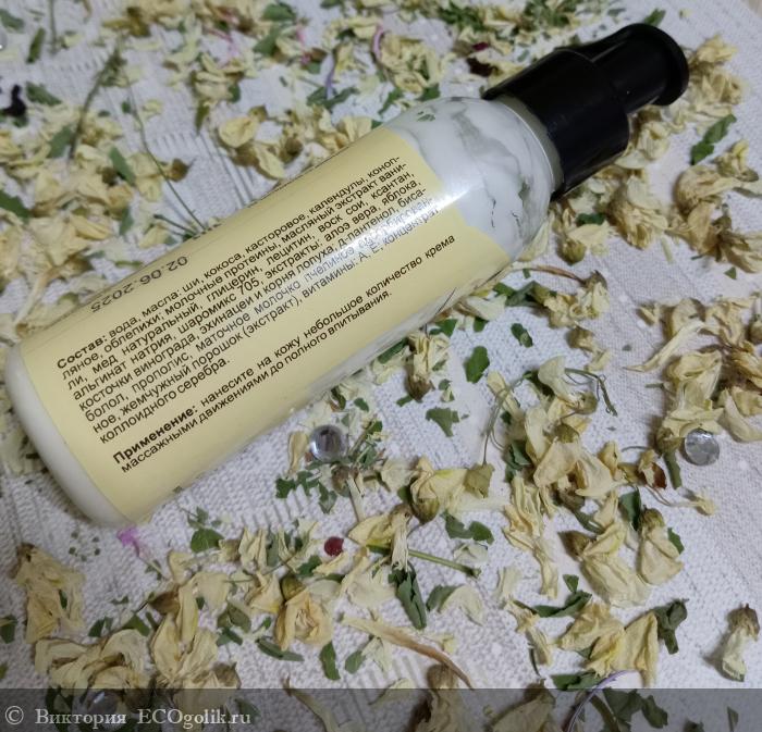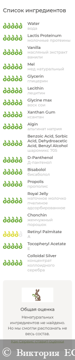 Натуральная эмульсия, стабилизированная воском, с натуральным медом, прополисом, маточным молочком и жемчужным порошком, обогащенная СО2 экстрактами, эфирными маслами, натуральными компонентами, обладающими антисептическими, защитными, регенерирующими, питательными и увлажняющими свойствами.