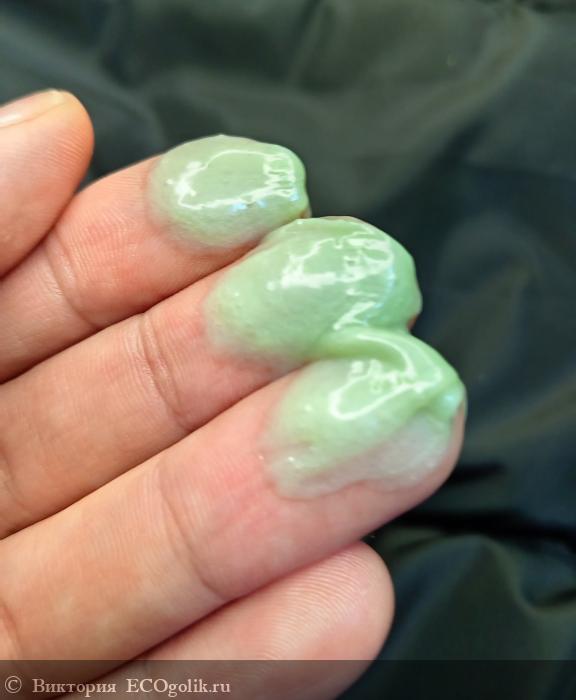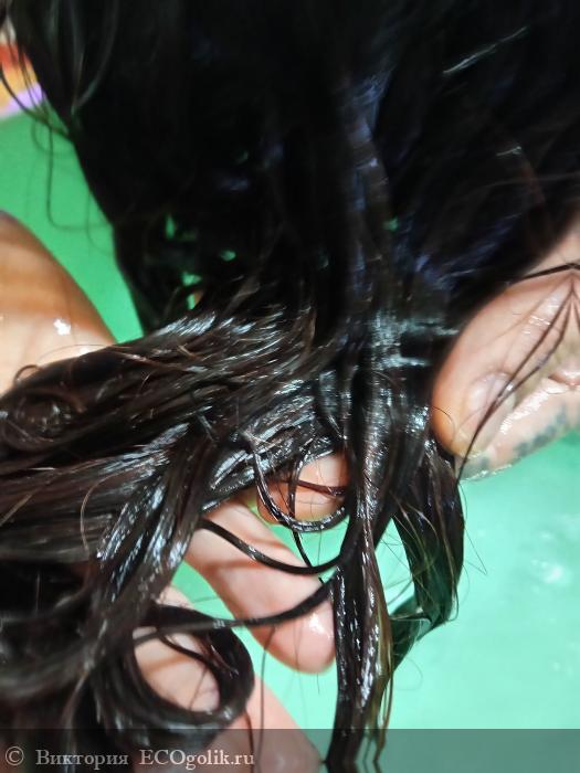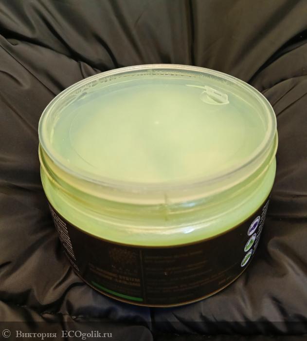 Мягкая, кремообразная. Текстура не сильно плотная, имеет приятные ощущения на ощупь. Воздушная, немного пористая. Жирненькая, но на волосах жирность не оставляет. Ковошинг при мытье приобретает консистенцию сметанки, не давая привычной пены, но при этом хорошо очищает волосы