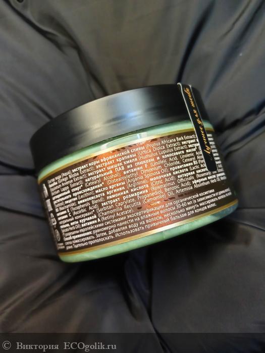 Африканская слива борется со стрессовым выпадением волос. Гинкго билоба, хмель, крапива и лопух укрепляют волосяные луковицы. Витамины A, B5, C, E, F, PP и аргинин стимулируют рост волос. Масло арганы восстанавливает структуру волос и убирает эффект «мочалки». При регулярном применении кончики волос перестают «сечься».