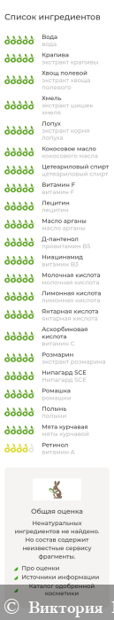 Acid); натуральный витамин E (Tocopherols Blend); лимонная кислота (Citric Acid); янтарная кислота (Succinic Acid); витамин C (L-ascorbic Acid); натуральные консерванты: экстракт розмарина, Нипагард SCE* (Natural