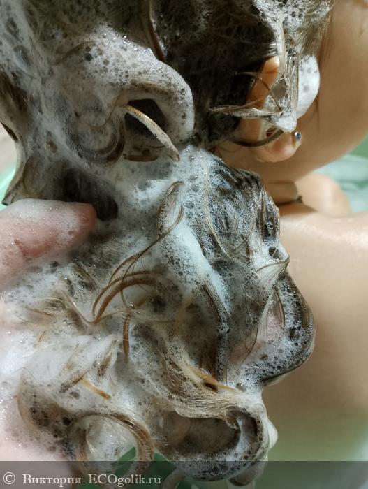 Шампунь очень хорошо пенится, требуется малое количество шампунь-геля чтобы намылить волосы и тело ребенка.