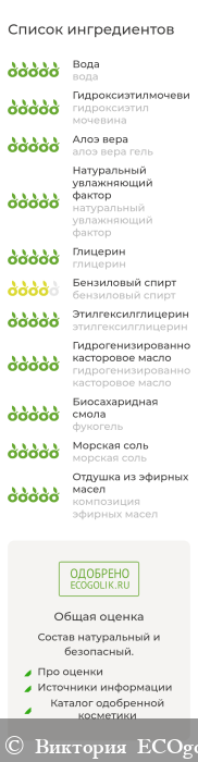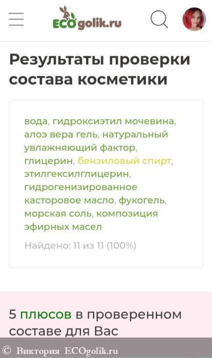 Состав полностью 100% натуральный и одобрен сайтом ECOGOLIK.RU
