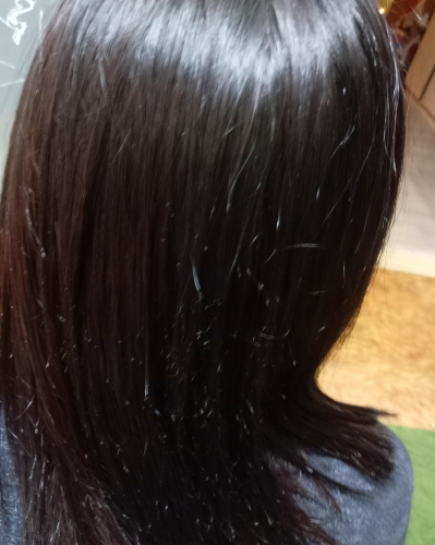 Восстановление и укрепление структуры. Молекулы кератина заполняют поры и микроповреждения, делают волосы более плотными, гладкими, послушными, сокращают их ломкость и «запаивают» секущиеся кончики.
