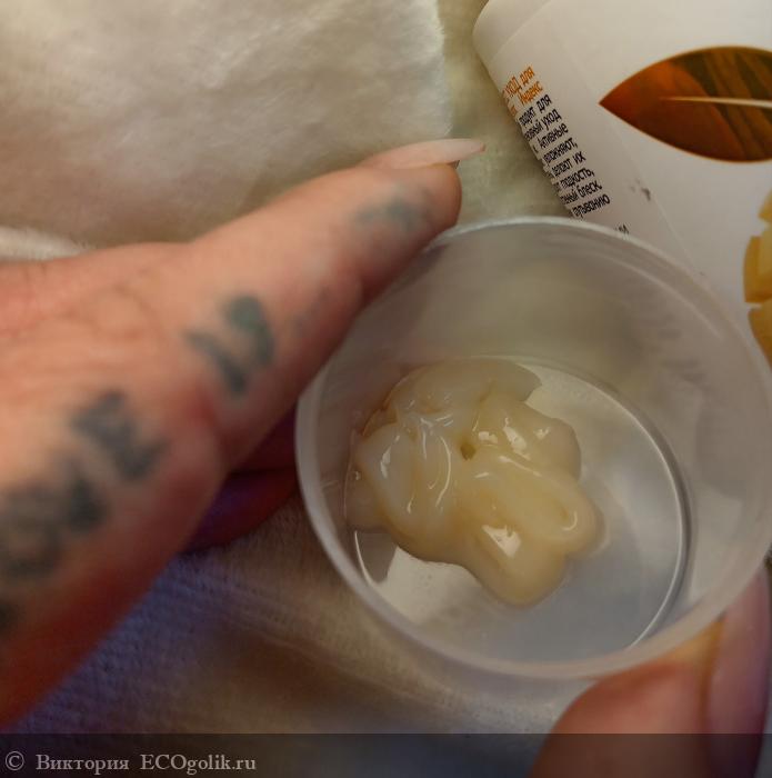 Очень приятная на ощупь, приятно наносится на волосы, не стикает. Проникает в каждый волосок, легко смывается.