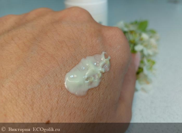 Так же цвет может варьироваться чуть, уходя в более зелёный или более белый, кремовый, слегка даже сероватый цвет в связи с натуральными компонентами в составе, что является абсолютной нормой. Иногда цвет крема в разных партиях отличается, что тоже нормально. Так же цвет зависит от освещения.