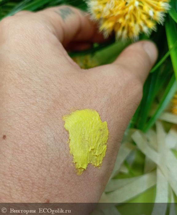 Роскошная густая текстура обеспечивает экономичный расход и комфортное нанесение. Маска не стекает, держится плотным, податливым слоем. Её нежная кремовая консистенция мгновенно смягчает кожу, а приятный салатовый оттенок визуально подчёркивает натуральные компоненты состава. Текстура очень похожа на слегка подтающее сливочное масло. При нанесении быстро подсыхает.