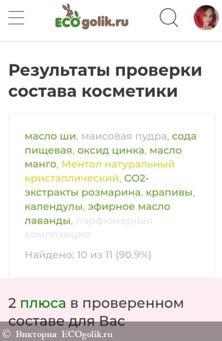 Первое впечатление это удобство в использовании. Паста на коже тает и наносится тонким слоем. Впитывается моментально,и не пачкает одежду Аромат ненавязчивый, лёгкий, цветочно-свежий. А какая классная защита, и главное надёжная. Даже после моих тренировок, кожа остаётся сухой и свежей. Особенно радует, что у продукта натуральный состав, и не вызывает никаких нежелательных реакций. Я Рекомендую!