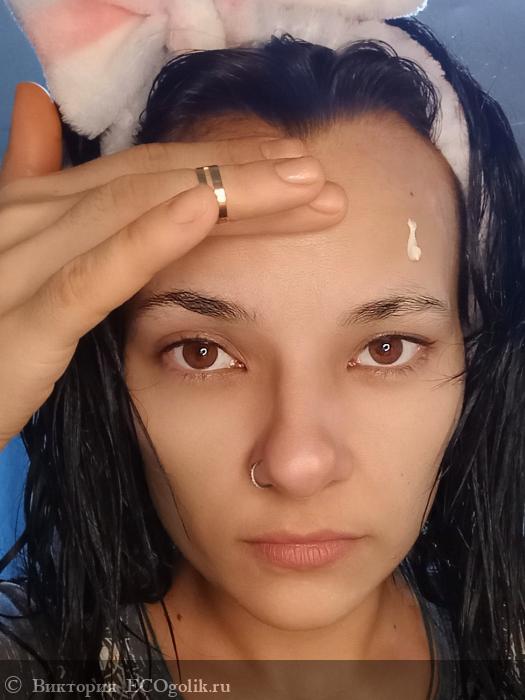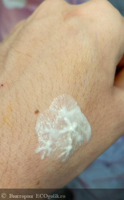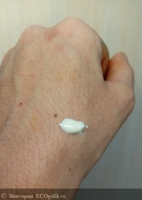 Консистенция плотная но очень легкая, невесомая. Несмотря на свою плотность и чуть чуть маслянистую текстуру, крем полностью впитывается за пару секунд и не ощущается на коже, заметен лишь хороший результат после полного впитывания.