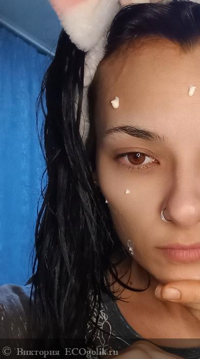 Текстура очень нежная, быстро тает и распределяется на коже. Цвет крема белый с желтоватым оттенком, это хорошо видно на фото выше⬆️ на коже крем выглядит полностью белым т.к. кожа у меня очень тёмная.