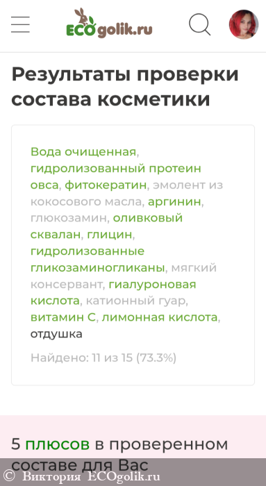 Сыворотка мне очень понравилась, она придает блеск потускневшим волосам, создает защитный слой (эффект ламинирования) Очень нравится то, что ее можно использовать как термозащиту, (так как у меня кудрявые волосы, и приходится часто укладывать их выпрямителем.)100% натуральный состав, без силиконов.