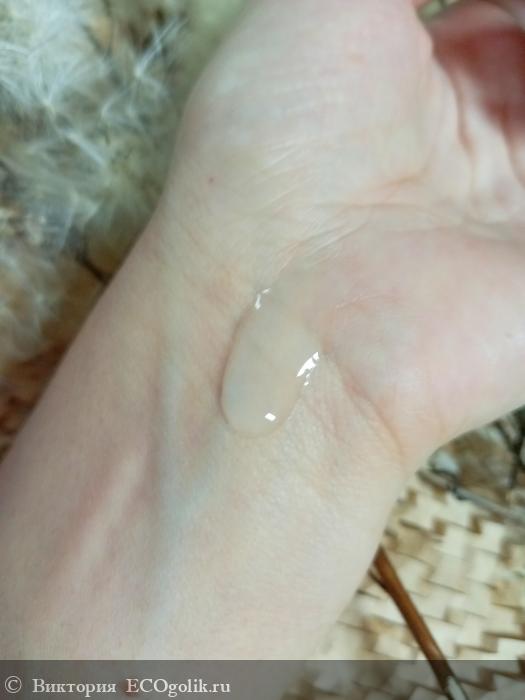 Лёгкая, гелеобразная текстура. Немного липкая. Быстро проникает в кожу, не оставляет жирности и липкой плёнки.