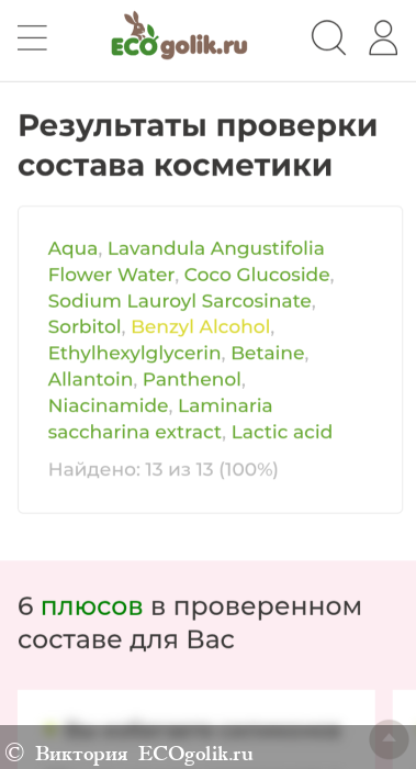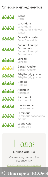 Aqua, Lavandula Angustifolia Flower Water, Coco Glucoside, Sodium Lauroyl Sarcosinate, Sorbitol, Benzyl Alcohol, Ethylhexylglycerin, Betaine, Allantoin, Panthenol, Niacinamide, Laminaria saccharina extract, Lactic acid.