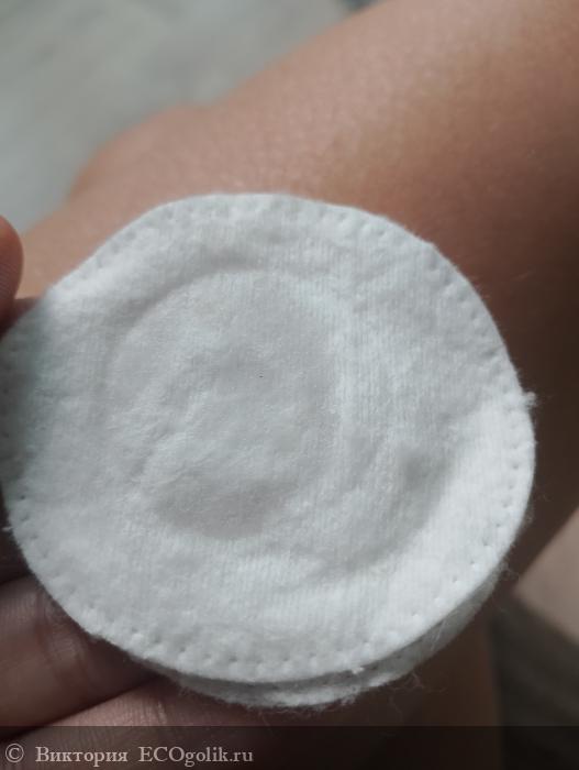 На ватном диске можно заметить, что водичка не имеет цвета, ватный диск просто мокрый.