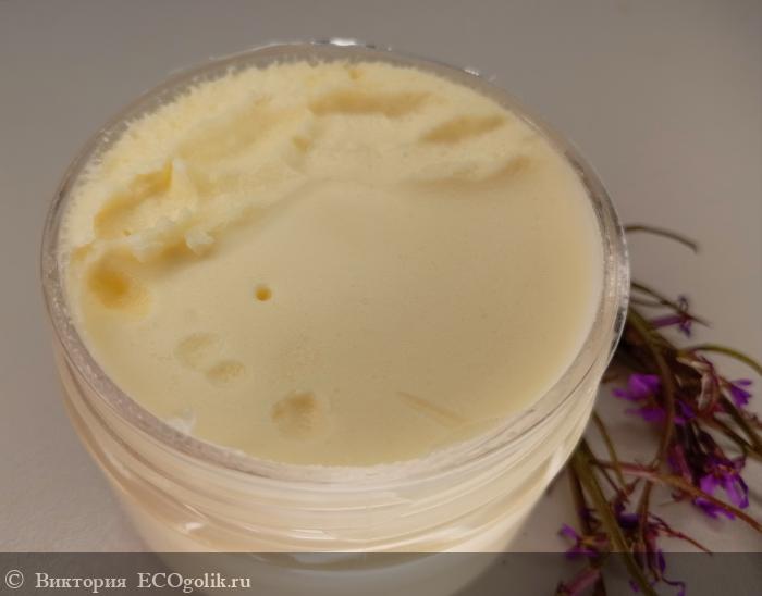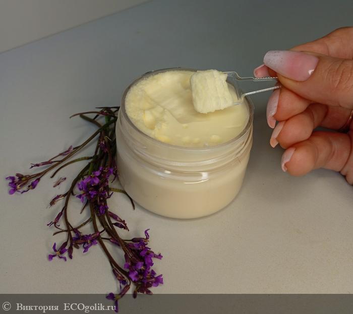 Цвет бальзама соответствует описанию текстуры, такой же как белый пористый шоколад. Бальзам очень хорошо питает кожу, быстро впитывается, не оставляет жирных следов, а только красивое сияние.