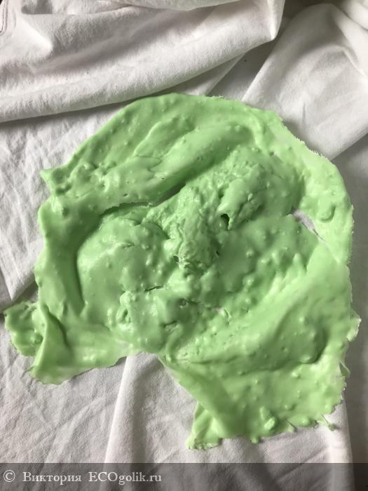 В самом начале отзыва я отметила, что альгинатными масками пользуюсь крайне редко. Почему? Во-первых, люблю готовые маски: нанести, потом смыть, и всё готово, а здесь нужно отмерить, быстро смешать, моментально нанести. В то же время в последнее время замечаю, что сухих масок стало много, они появляются и у меня. Пока непривычно, но разбавить водой/гидролатом/маслом не так и сложно. Во-вторых, я искренне считаю, что польза альгинатных масок сильно преувеличена, ведь что они делают? По сути, создают условия для лучшего проникновения в кожу разных полезностей и накопления влаги. Вот и получается, что не столь важна альгинатная маска сама по себе, сколько то, что мы наносим под маску. Этим и обусловлен способ применения: я очищаю кожу, тонизирую, густо наношу сыворотку и только потом - альгинатную маску. Способ её приготовления описан на упаковке: 30 гр сухой маски (я взвешивала на весах, хотя в банке есть мерная ложечка) развести 100 мл воды, быстро размешать и нанести на лицо, включая глаза и губы. Приготовленной в таком количестве маски хватит на лицо, шею и даже декольте. Если хотите только на лицо, то можно обойтись 15 гр. Я не экономила, наносила толстым слоем на лицо и шею. Первый раз, если честно, опростоволосилась: пока делала фотографии, маска пластифицировалась, я успела нанести только на половину лица, поэтому пришлось привлечь мужа к приготовлению новой порции и даже к нанесению на моё лицо, так как глаза у меня были уже «залиты». Честно говоря, смешно было и мне, и мужу. Вот что значит отсутствие опыта. Как следствие, не очень красивые фотографии снятой маски: прошу понять и простить.