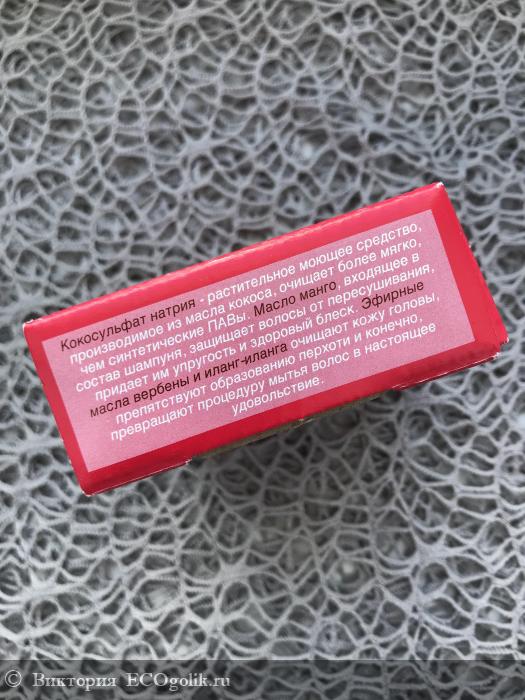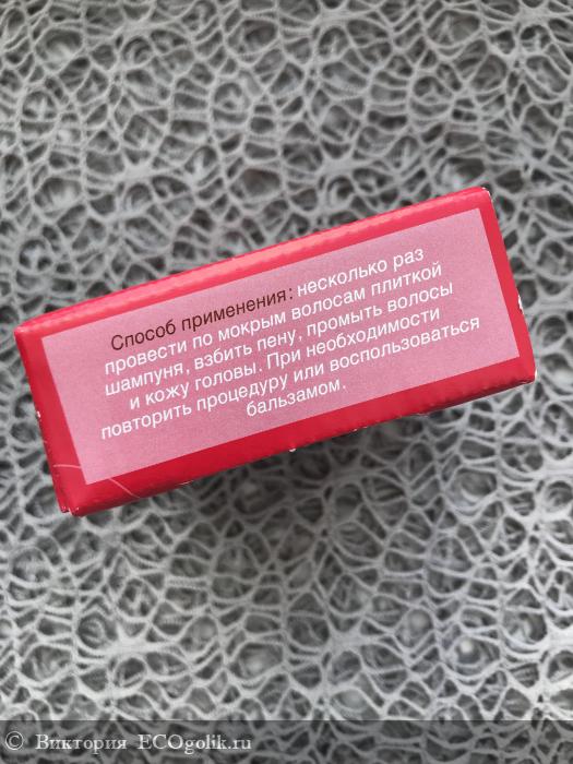 Шампунь «Суданская роза» отлично смыл маску, хотя, конечно, мне пришлось мыть голову два раза, да и намыливать волосы тщательнее. Именно смывая маску я заметила, что включения лепестков розы в бруске шампуня цепляются за волосы, поэтому очень рекомендую намыливать руки и только затем наносить эту пену на кожу головы.